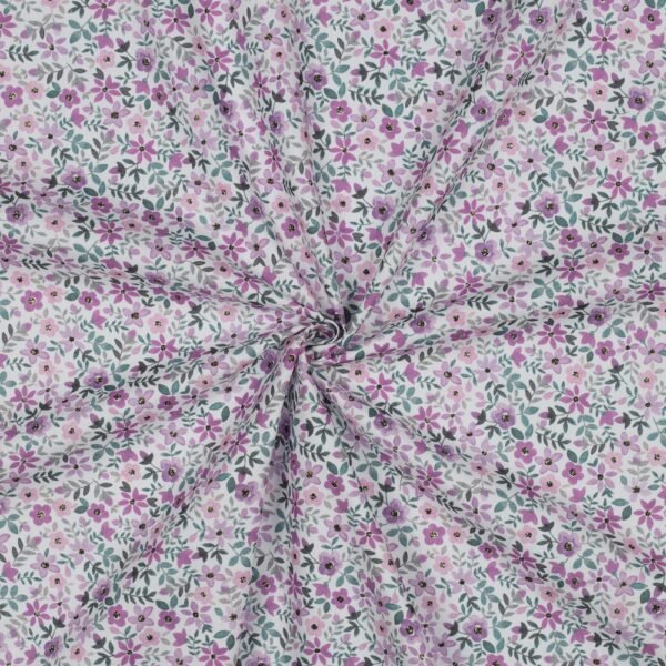 Popeline Digital Flowers – Branco / Roxo
