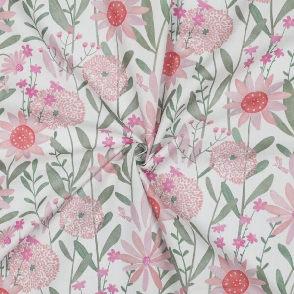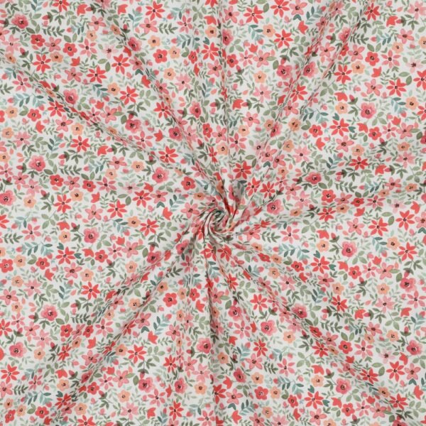 Popeline Digital Flowers – Branco / Vermelho