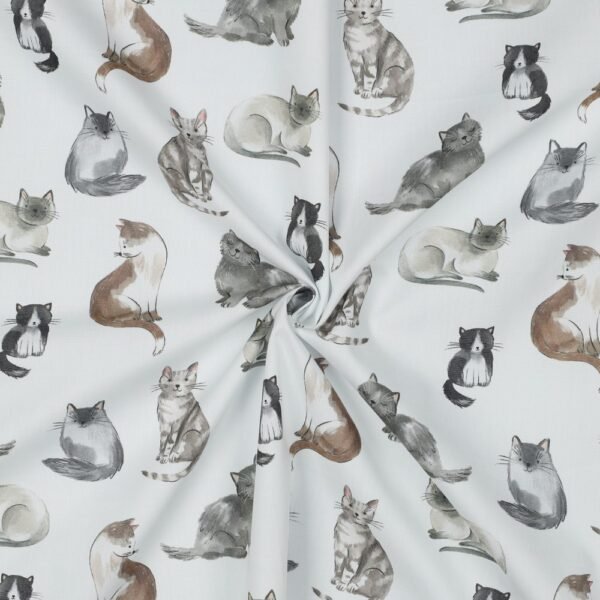 Popeline Digital Gatos – Branco