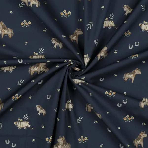 Popeline Sweet Horses – Azul Marinho