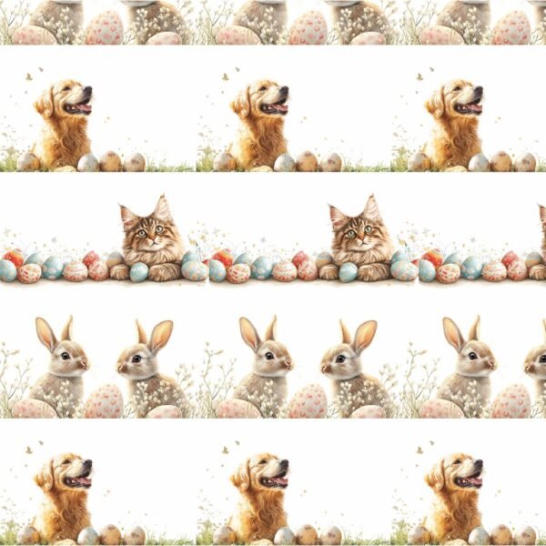 Tecido Decoração Policanvas Barras Animais Páscoa