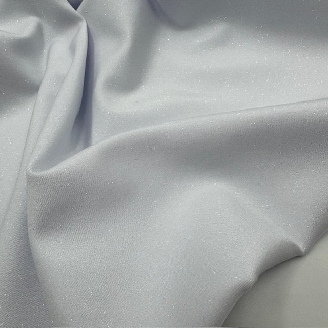 Lycra Mate com Glitter Prateado — tecido elástico com brilho elegante, ideal para moda fitness, dança, figurinos e fatos de banho.