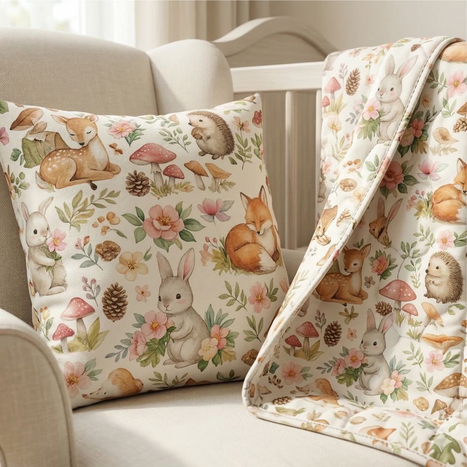 Estampagem de Alta Definição: O padrão de coelhos e elementos botânicos apresenta cores suaves e detalhes nítidos, mantendo o aspeto impecável mesmo após sucessivas lavagens.