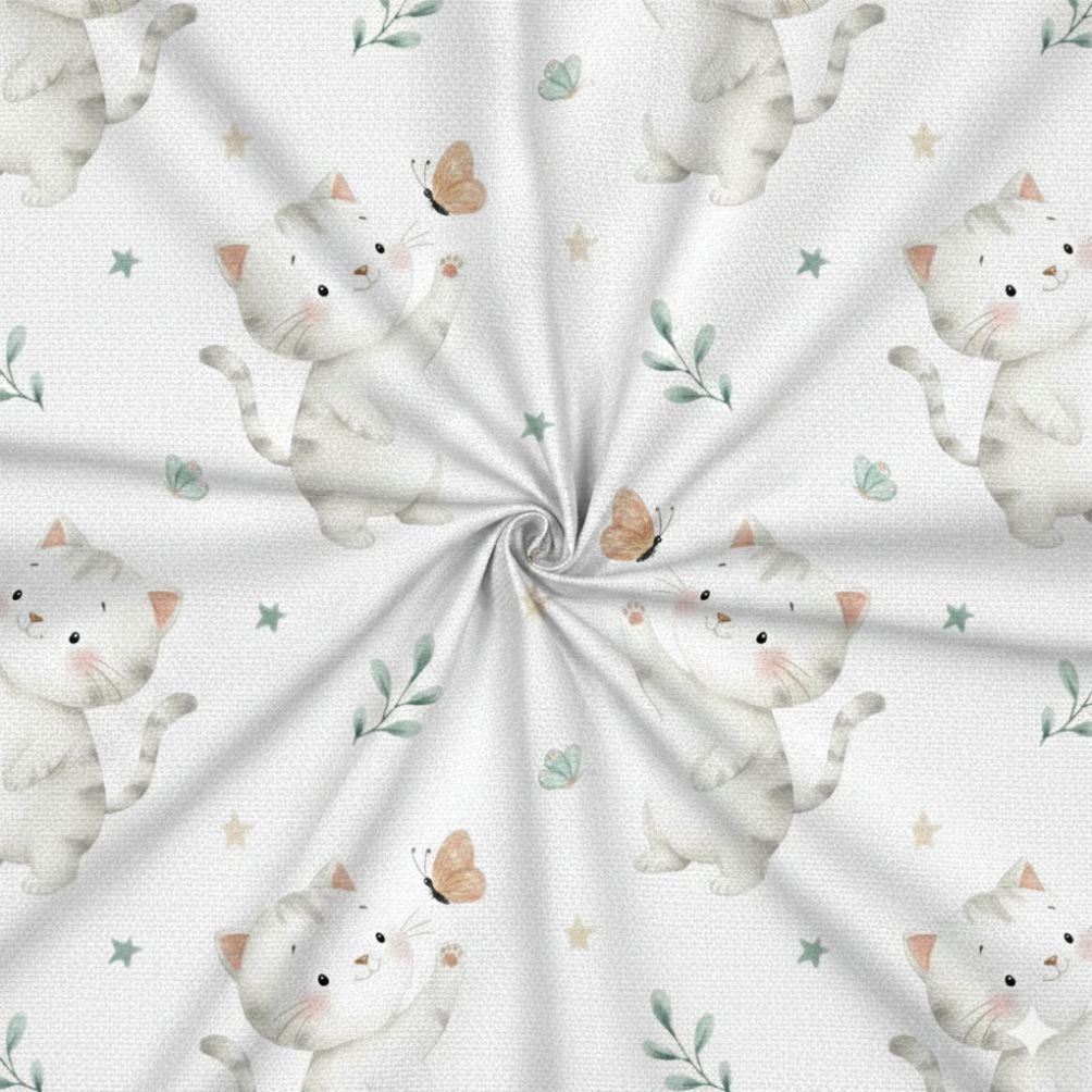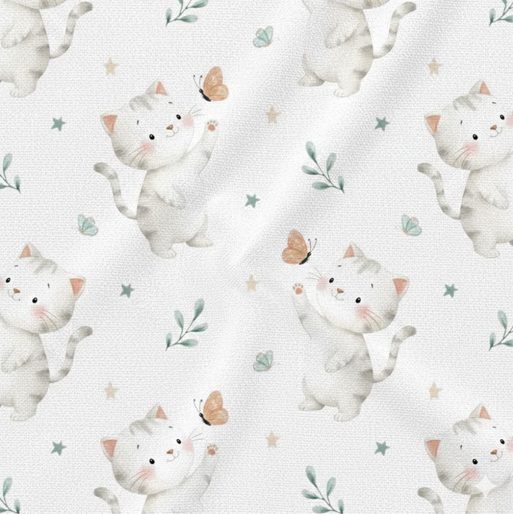Popeline Animais Gatinho e Borboletas – Branco