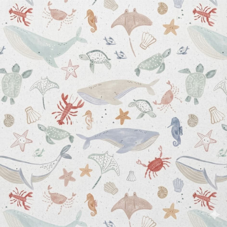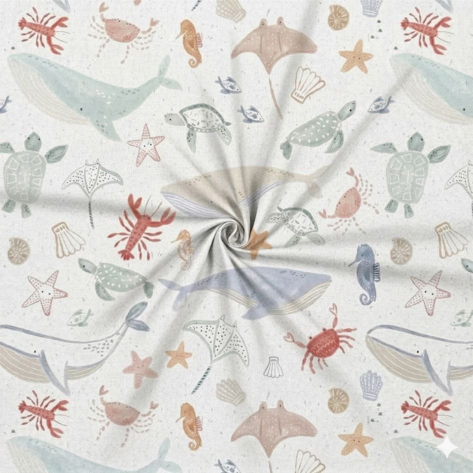 Popeline Animais Marinhos – Branco