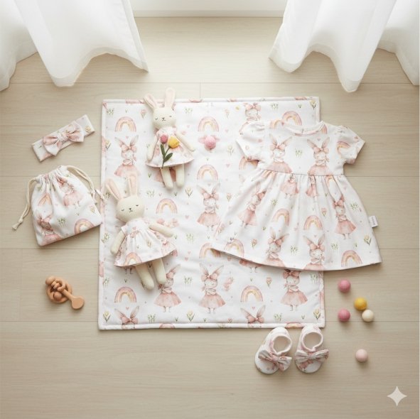 Estampagem de Alta Definição: O padrão de coelhos e elementos botânicos apresenta cores suaves e detalhes nítidos, mantendo o aspeto impecável mesmo após sucessivas lavagens.
