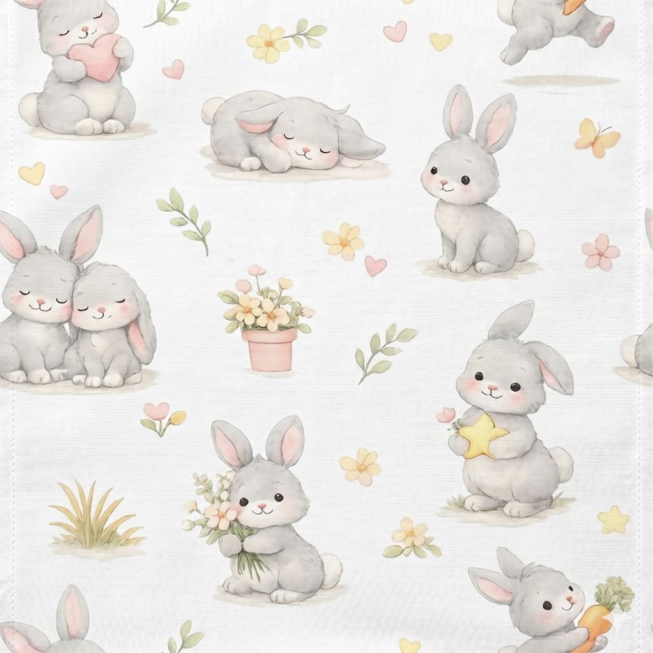 Estampagem de Alta Definição: O padrão de coelhos e elementos botânicos apresenta cores suaves e detalhes nítidos, mantendo o aspeto impecável mesmo após sucessivas lavagens.