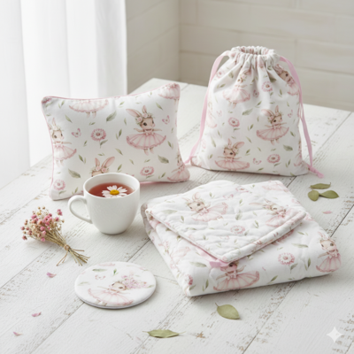 Estampagem de Alta Definição: O padrão de coelhos e elementos botânicos apresenta cores suaves e detalhes nítidos, mantendo o aspeto impecável mesmo após sucessivas lavagens.