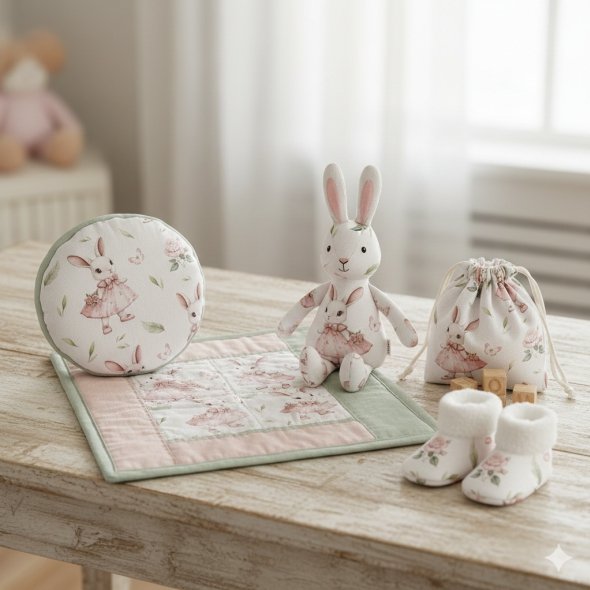 Estampagem de Alta Definição: O padrão de coelhos e elementos botânicos apresenta cores suaves e detalhes nítidos, mantendo o aspeto impecável mesmo após sucessivas lavagens.