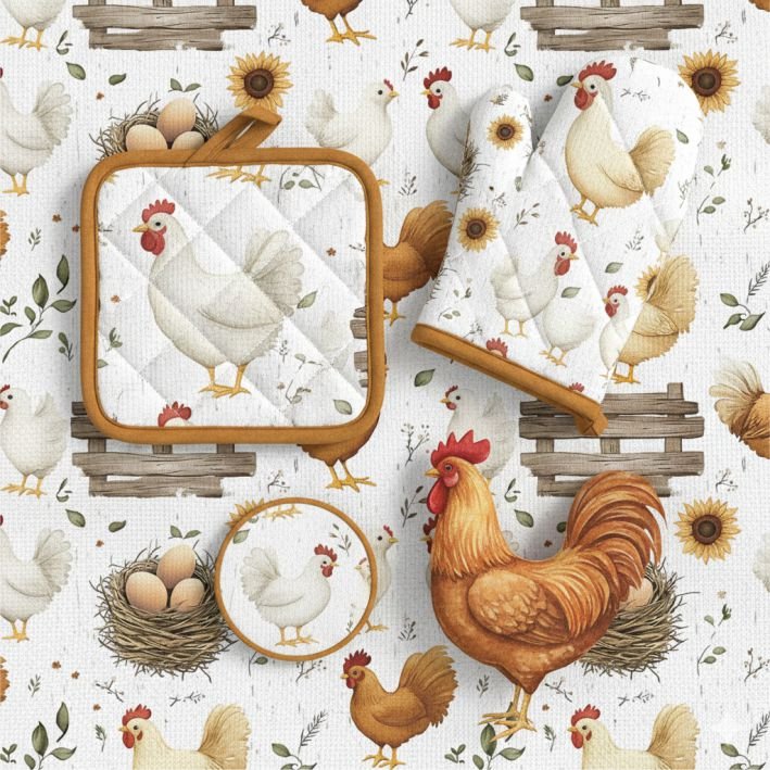 Popeline Páscoa Galinha – Branco