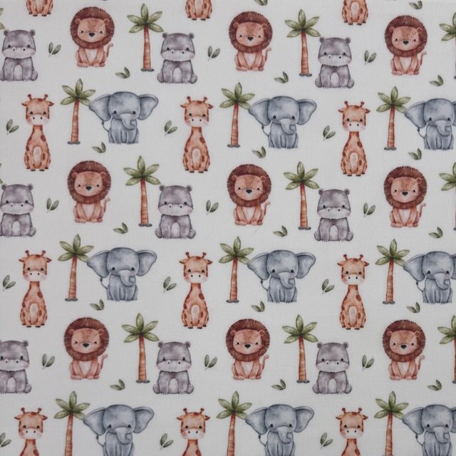 Tecido leve, fresco e suave ao toque, ideal para roupa e acessórios de criança. Com padrões divertidos e coloridos, é perfeito para camisas, vestidos, babetes, lençóis e muito mais.