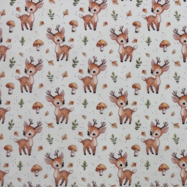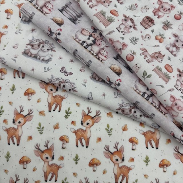 Tecido leve, fresco e suave ao toque, ideal para roupa e acessórios de criança. Com padrões divertidos e coloridos, é perfeito para camisas, vestidos, babetes, lençóis e muito mais.