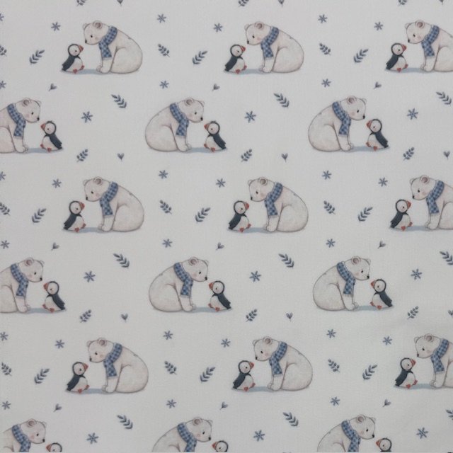 REF: Tecido Popeline Urso e Pinguin - Branco b Categorias: , , , , ,