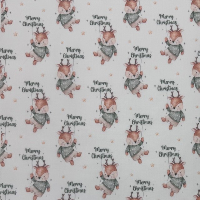 Tecido Popeline Veado Natal – Branco